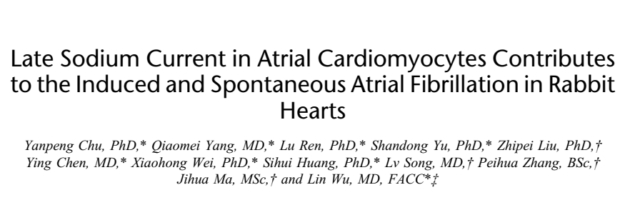 > 【Title】 Late Sodium Current in Atrial Cardiomyocytes Contributes to the Induced and Spontaneous Atrial Fibrillation in Rabbit Hearts