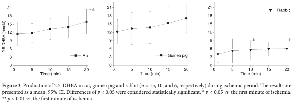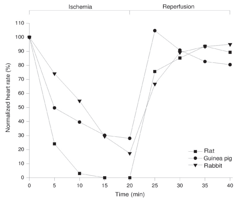 > Title: Hydroxyl radicals' production and ECG parameters during ischemia and reperfusion in rat, guinea pig and rabbit isolated heart